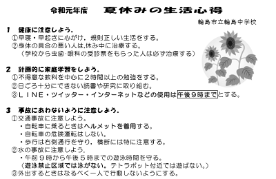 夏休みの生活について 生徒指導だより 各種たより 福山市立幸千中学校 福山市立幸千中学校の公式ホームページです