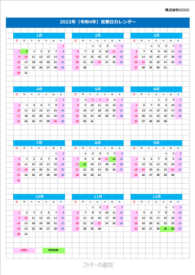 年間カレンダー 西暦欄に年を入力するだけで、日付が自動的に更新されます。 イベントを入力すると、カレンダー上にハイライト表示されるから、大切な日を管理するのにとても便利です。 1 年